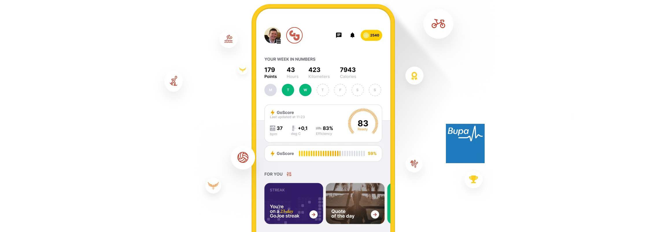 There are a number of differences in GoJoe's propositions, pricing, scope and model: USPs of GoJoe · Pricing: Cost / whole of workforce: - GoJoe is a low cost product for whole of workforce, achieved via significant value and features being embedded by default (challenges, journeys, social, clubs, wearables, benefits locker, gamification – see ‘social features’ section below), but with an optional GoJoe Rewards functionality being made available on top. This reduces up-front cost significantly, with any rewards funding being strategically optional/ configurable by employers subject to budget. - Employers can heavily configure not only whether Rewards are available, but also the behaviours needed to ‘unlock’ rewards and also which rewards should be made available (with over 3k rewards globally). This also is beneficial to brokers and consultants interested in adding value to clients in terms of incentive/ reward design. - GoJoe’s scalable platform covers everyone, everywhere, not just those not eligible for / covered by medical insurance – and represents the first gamified, health & rewards platform suitable for large and/or global corporates.Inclusivity and geography: - GoJoe is a platform built by ordinary Joes, for ordinary Joes to help motivate the the ‘masses’ (i.e. those at risk re health), rather than ‘invested athletes’ or those who rely solely on step-counting. It is positioned more as performance and health product (with a data focus). The inclusivity element – i.e. those who don’t want to, or can’t step - is significant from a sales and positioning perspective (as well as aligning heavily with Bupa’s Paralympic GB partnership). - Global: GoJoe is unlimited in terms of geographies. The platform is currently live in 180 countries and in 36 languages with global user and client support and content. This is a significant value-add for global businesses, but also a strategic value-add from BUPA with regards the opportunity to further embed and drive value internationally, as well as enhance data reporting capabilities. - Activity tracking: GoJoe has multiple ways of users being able to log and track their activity, allowing anyone to use the platform regardless of tech set up - Wearable agnostic: GoJoe integrates with all major wearables, across 60+ activity types (from running to HIIT to wheelchair) for seamless/ automated tracking to points based on an algorithm - In app GPS: Users can log and track activities live in GoJoe using the GPS tracker - Manual: Manual entry enables accessibility, but market-leading integrity measures to prevent and address cheating. - Activities-focused: GoJoe is not focused solely on everyday steps – it includes over 60 different activities on the platform. All activities are converted automatically into weighted points, allowing all users to take part by doing more the of things they enjoy. - 5 pillars of Health and wellbeing: GoJoe focues primarily on physical health, but also addresses mental, social and financial health too. Social: - GoJoe’s functionality is centred around enhancing social connection rather than individualised achievements - and using this to get users healthier and more active. This is very relevant where culture and dispersed workforces are key challenges for organisations, and/or there are existing challenges with health costs or absenteeism: - Teams: Challenges have centred around teams and team engagement, with a solo element attached to it - Social accounts, friends and followers: Users create accounts and follow their friends and colleagues. Activity is shared via live feeds and users can interact with and encourage the people the follow - Clubs: Users/organisations can create and join their own activity clubs such as Run Clubs, Cycling Clubs etc. to bring like-minded colleagues together and encourage employees back to the office (which is very relevant in certain industries) - Journeys: Gamified guided health programmes that users can join and start together - Chat: Chat groups are automatically triggered for all challenges, teams, organisations, and Clubs Locker/ Benefits navigation: As a global, configurable tool, GoJoe’s locker functionality gives clients the ability to link to configurable benefits in any territory. For UK employees, of course this will include Bupa products and services, however, these may include other benefits relevant to other territories (whether Bupa or otherwise). Integrated Partnership: By partnering with Clinics and UKI, GoJoe connects and amplifies Bupa's existing product suite, enabling opportunities to cross-sell/ upsell of those services within corporates and giving clients a reason to stay with, or convert to, Bupa services. Data: The GoJoe system, when combined with the BUPA partnership, allows a 360 degree data on health for the client, allowing them to see a full picture of their team’s health and wellbeing. This ‘Dataloop’ project, being built by Bupa, GoJoe and Stanford University (among other high profile large corporates), leverages rich wearable data (not just steps) to give Bupa a significant advantage with regards combining various data sources for reporting (and eventually pricing) purposes.